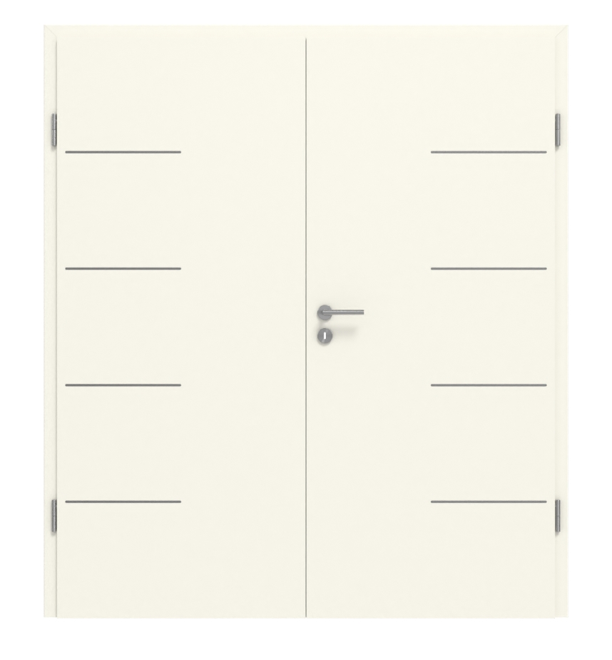 Cztery krótkie lizeny biegną od stron zawiasów do środka skrzydeł drzwiowych. Dekor Snow White można łatwo wkomponować w każde wnętrze. Powierzchnia CPL jest łatwa w pielęgnacji i wykazuje dobrą odporność na zarysowania i uderzenia.