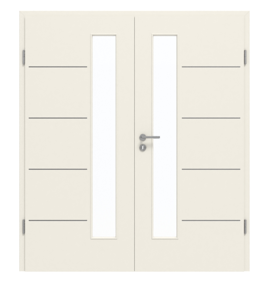 Skrzydła drzwiowe zdobią cztery wzdłużne lizeny. Po obu stronach zamku znajduje się ponadto po jednym wąskim przeszkleniu, które zapewnia delikatny dopływ światła. Powierzchnia zachwyca świeżym i zachęcającym designem, który przypomina stylowy wygląd białego lakieru 9010. Powierzchnia CPL jest nie tylko odporna na zarysowania i uderzenia, ale także niemal całkowicie odporna na działanie środków czyszczących. Dzięki temu czyszczenie jej jest dziecinnie proste.