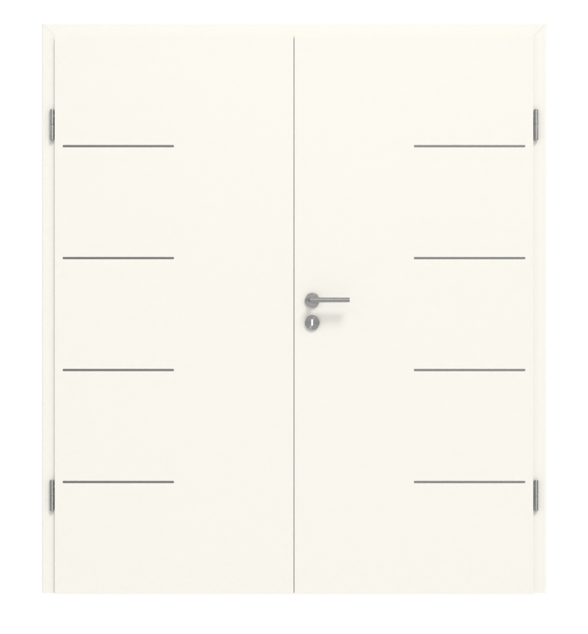 Cztery poziome lizeny biegną dekoracyjnie od strony zawiasów do środka skrzydeł drzwiowych. Perłowo-biały kolor skrzydła drzwi emanuje elegancją. Powierzchnia CPL jest nie tylko odporna na zarysowania i uderzenia, ale także niemal całkowicie odporna na działanie środków czyszczących. Dzięki temu czyszczenie jej jest dziecinnie proste.