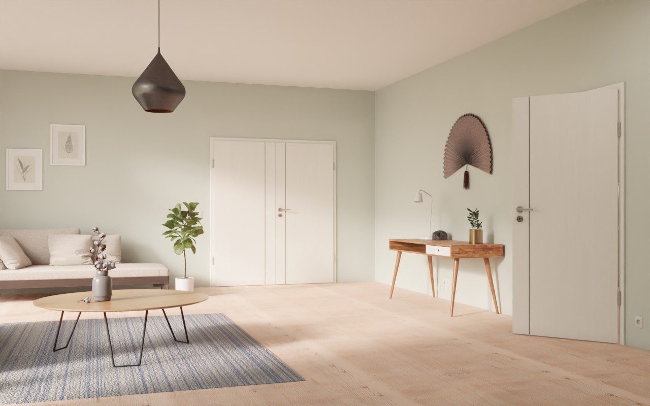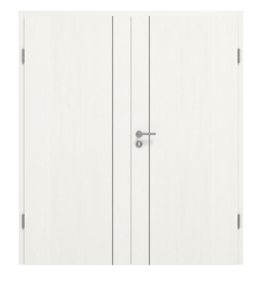 Atrakcyjna dwuskrzydłowa drzwi wewnętrzne zachwyca odporną na brud powierzchnią CPL i delikatnymi listwami: