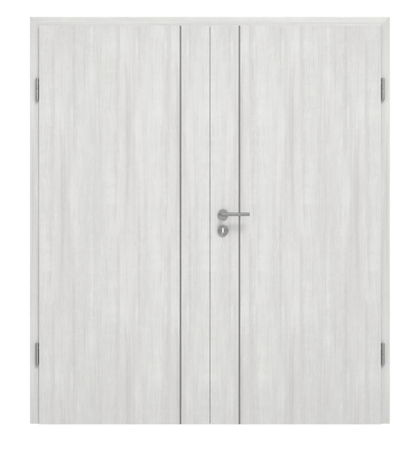 Drzwi wewnętrzne z podwójnymi skrzydłami wyróżniają się trwałą powierzchnią CPL oraz prostym designem listew: