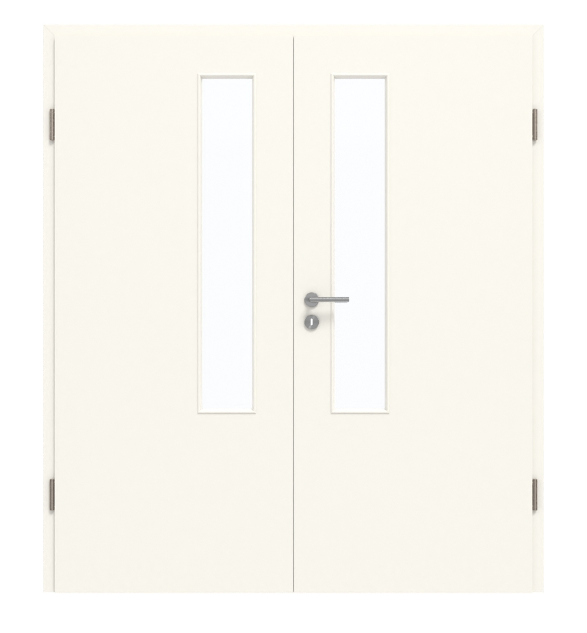 Dzięki klasie wytrzymałości M dwuskrzydłowe drzwi są przeznaczone do użytku w pomieszczeniach prywatnych lub biurowych. Stabilność zapewnia warstwa środkowa z pełnej płyty wiórowej. Podana cena obejmuje oba skrzydła drzwiowe, pasującą ościeżnicę, zamek na klucz oraz zawiasy.