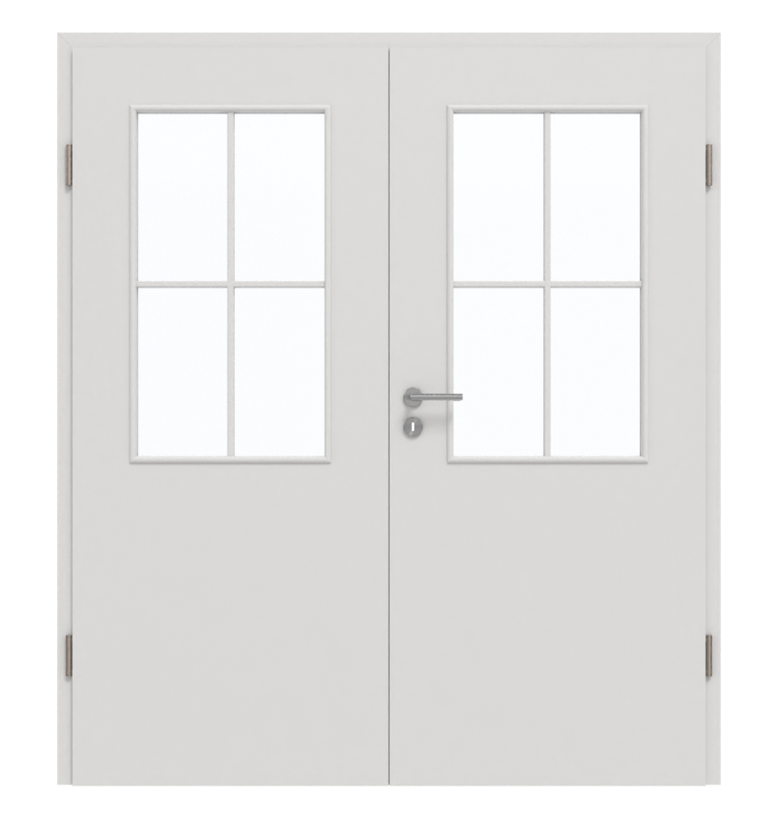 Drzwi dwuskrzydłowe mają środkową warstwę z płyty wiórowej. Posiada certyfikat klasy wytrzymałości M i jest przeznaczona do użytku w pomieszczeniach prywatnych lub biurowych. Podana cena obejmuje oba skrzydła drzwiowe, odpowiednią ościeżnicę, zamek bębenkowy oraz zawiasy.