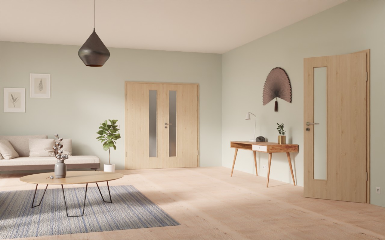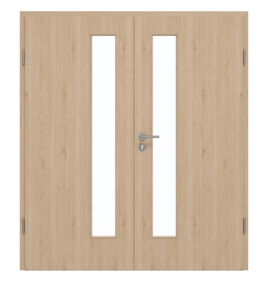 Te dwuskrzydłowe drzwi doskonale nadają się zarówno do pomieszczeń prywatnych, jak i biurowych. Posiadają warstwę środkową z płyty wiórowej i zostały przetestowane w grupie obciążenia M. Podana cena obejmuje oba skrzydła drzwi, odpowiednią ościeżnicę, zamek z kluczem oraz zawiasy.