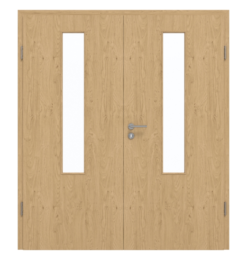 Drzwi dwuskrzydłowe mają środkową warstwę z płyty wiórowej. Posiada certyfikat klasy wytrzymałości M i jest przeznaczona do użytku w pomieszczeniach prywatnych lub biurowych. Aby całość była spójna, cena obejmuje nie tylko skrzydła drzwiowe, ale również ościeżnicę, zawiasy i zamek.