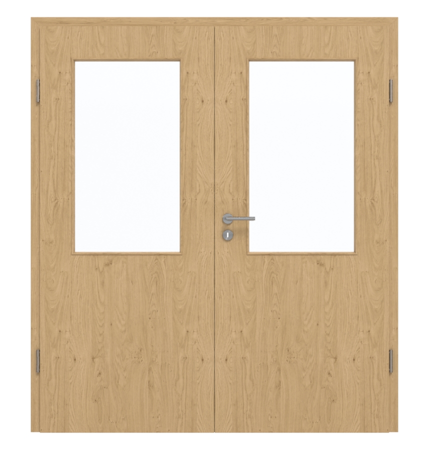 Dzięki rdzeniowi z pełnej płyty wiórowej drzwi dwuskrzydłowe nadają się zarówno do pomieszczeń prywatnych, jak i biurowych. Przetestowane w grupie obciążenia M. Podana cena obejmuje oba skrzydła drzwiowe, pasującą ościeżnicę, zamek bębenkowy i zawiasy.