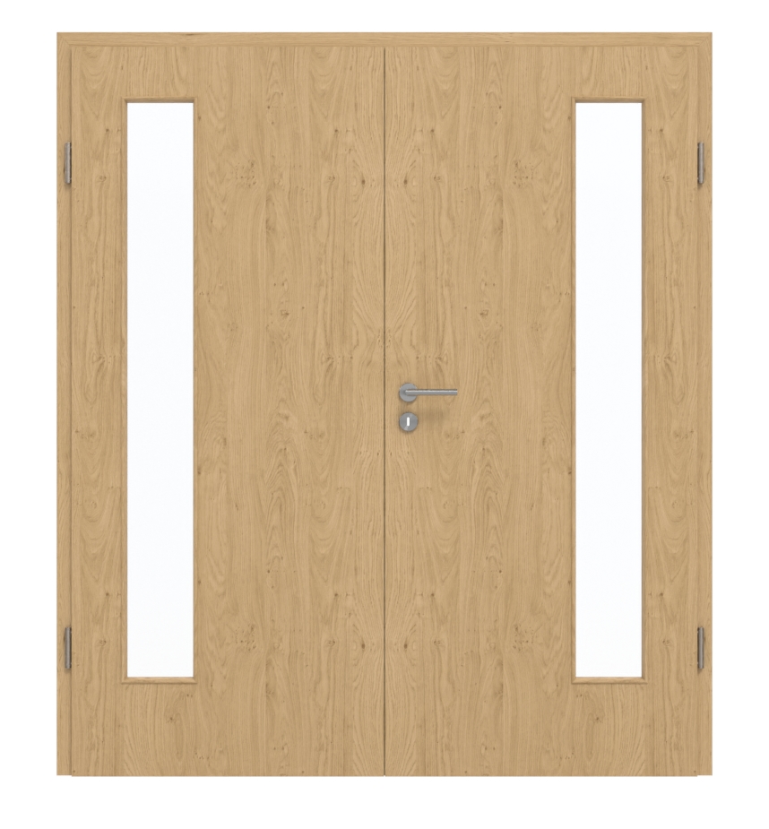 Drzwi dwuskrzydłowe mogą być stosowane zarówno w pomieszczeniach prywatnych, jak i biurowych. Została przetestowana w grupie obciążenia M i posiada warstwę środkową z pełnej płyty wiórowej. Cena obejmuje skrzydła ruchome i stałe, ościeżnicę, zawiasy oraz zamek z kluczem.