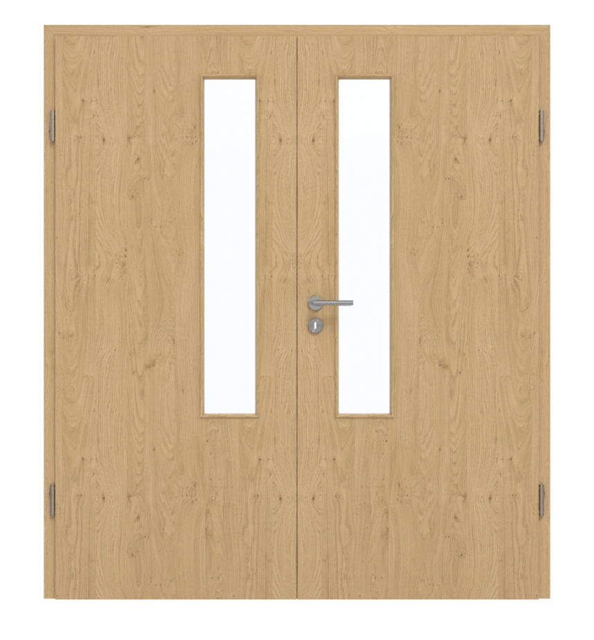 Dzięki zaliczeniu do klasy obciążenia M te drzwi dwuskrzydłowe nadają się zarówno do pomieszczeń prywatnych, jak i biurowych. Ich rdzeń składa się z pełnej płyty wiórowej. Cena obejmuje skrzydła ruchome i stałe, ościeżnicę, zawiasy oraz zamek z kluczem.