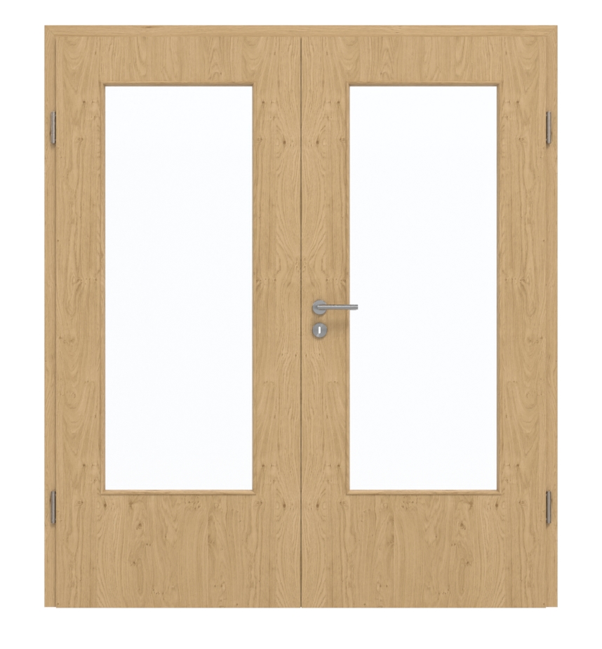 Drzwi skrzydłowe mają środkową warstwę z płyty wiórowej pełnej. Została ona przetestowana w grupie obciążenia M i idealnie nadaje się do użytku w pomieszczeniach prywatnych lub biurowych. Oprócz skrzydeł drzwiowych, zakres dostawy obejmuje również ościeżnicę, zamek i zawiasy.