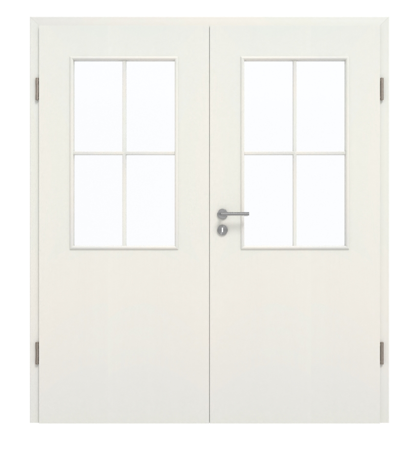 Dzięki klasie wytrzymałości M dwuskrzydłowe drzwi są przeznaczone do użytku w pomieszczeniach prywatnych lub biurowych. Stabilność zapewnia warstwa środkowa z pełnej płyty wiórowej. Oprócz skrzydła ruchomego i skrzydła stałego, zakres dostawy obejmuje również ościeżnicę, zamek i zawiasy.