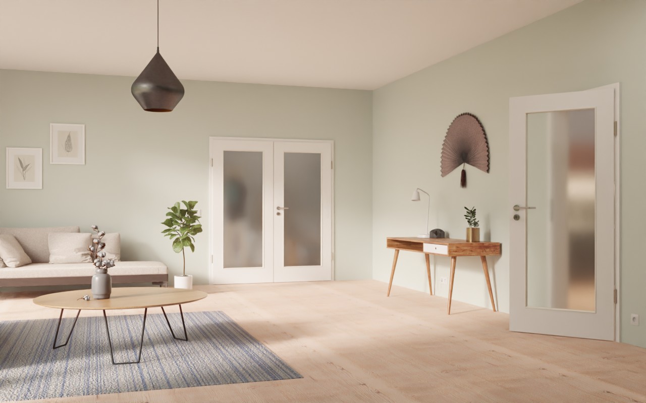 Atrakcyjne podwójne drzwi wewnętrzne z wytrzymałą powierzchnią HPL: