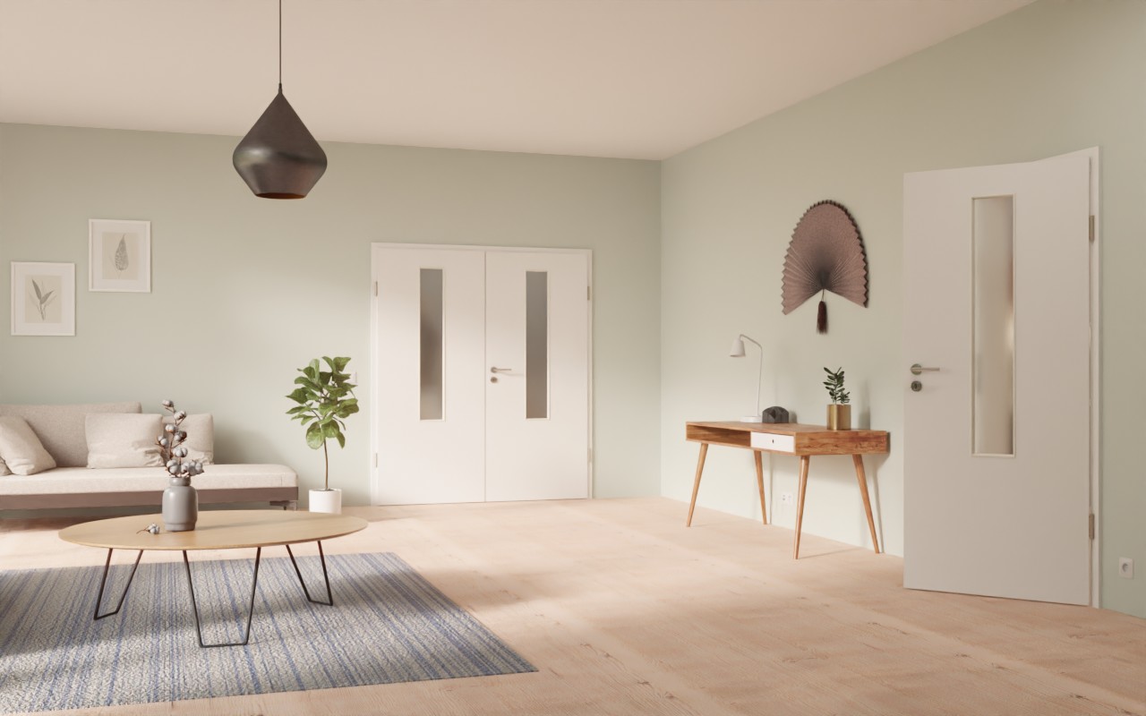 Stylowe podwójne drzwi wewnętrzne z łatwą w pielęgnacji okleiną HPL: