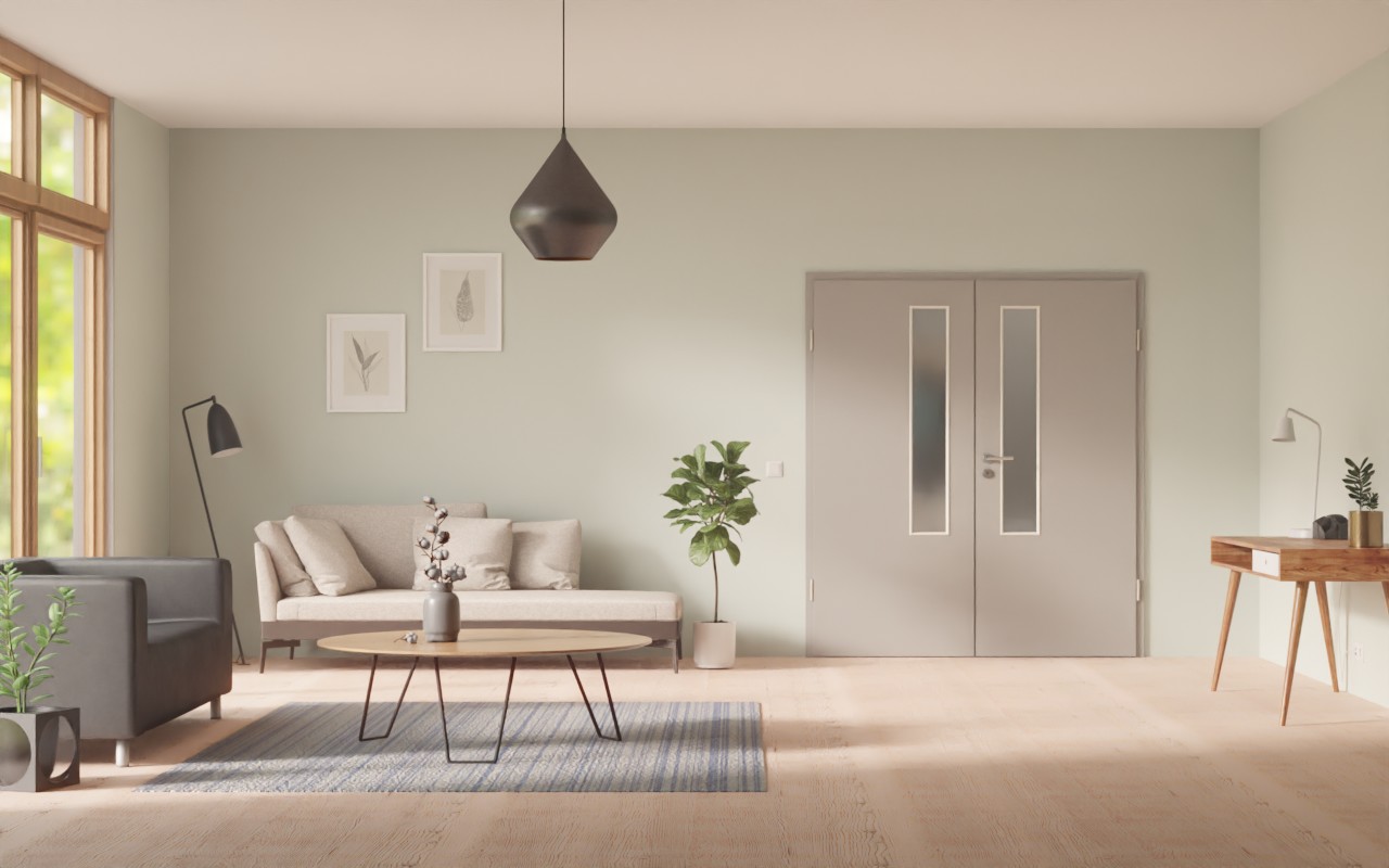 Atrakcyjne podwójne drzwi wewnętrzne z łatwą do czyszczenia powierzchnią HPL: