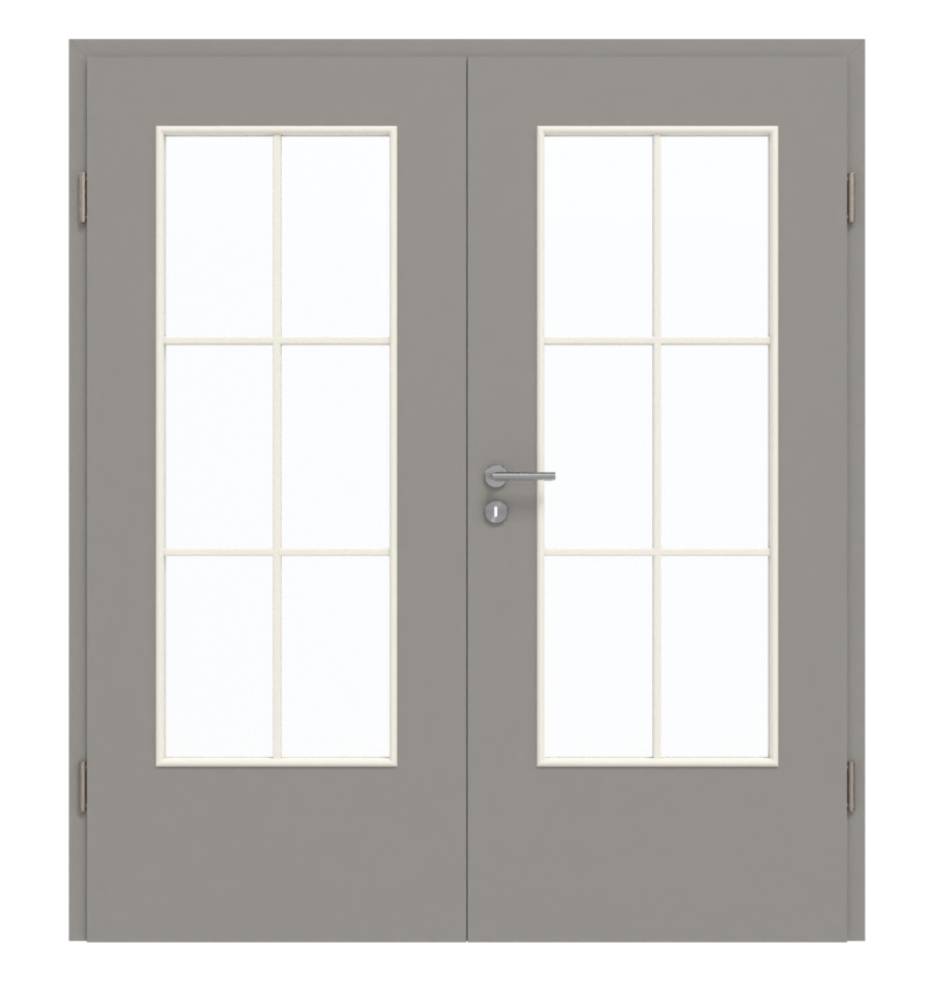 Drzwi dwuskrzydłowe sprawdzają się zarówno w pomieszczeniach prywatnych, jak i w biurze. Dzięki rdzeniowi z płyty wiórowej odpowiada ona klasie obciążenia M. Zakres dostawy obejmuje oba skrzydła drzwiowe, ościeżnicę, zawiasy oraz zamek z kluczem wielobarwnym.