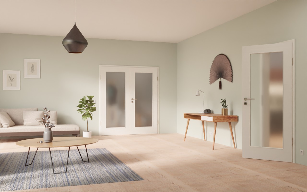 Ciesz się otwartymi, jasnymi pomieszczeniami dzięki drzwiom pokojowym podwójnym z pięknym wycięciem na szybę!