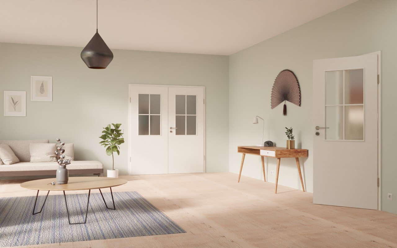Dzięki praktycznemu przeszkleniu drzwi skrzydłowe firmy Garant zapewniają dodatkowe oświetlenie pomieszczenia.