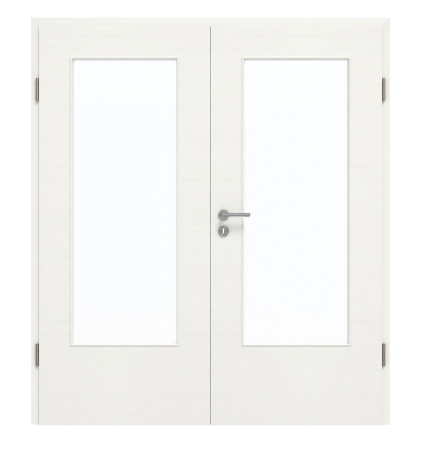 Dzięki dużym przeszkleniom do pomieszczenia wpada dodatkowe światło. Białe skrzydło drzwiowe łączy w sobie naturalność i nowoczesność dzięki subtelnej fakturze drewna, która rozciąga się na całej powierzchni. Oprócz atrakcyjnego wyglądu warstwa HPL przekonuje również swoją odpornością na zarysowania, uderzenia i ścieranie. Jest odporna na plamy i łatwa w czyszczeniu.