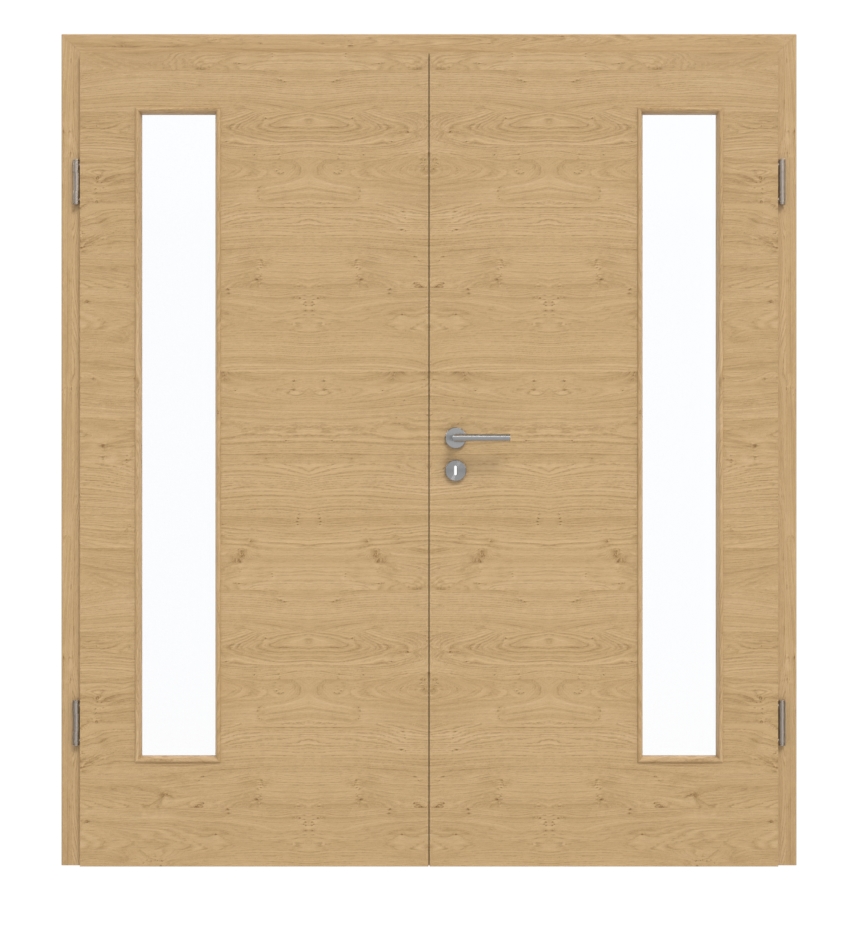 Dzięki rdzeniowi z płyty wiórowej oraz certyfikacji w grupie obciążeniowej M te drzwi dwuskrzydłowe nadają się zarówno do pomieszczeń prywatnych, jak i biurowych. Podana cena obejmuje oba skrzydła drzwi, odpowiednią ościeżnicę, zamek z kluczem oraz zawiasy.