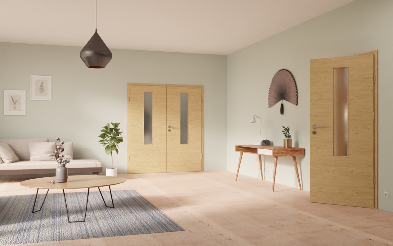 Najważniejszym elementem projektu są wąskie otwory na światło, które zdobią środkową część skrzydeł drzwi. Atrakcyjny dekor CPL Authentic dąb szypułkowy DQ urzeknie wzdłużnym usłojeniem, sporadycznymi śladami po sękach i autentycznym wyglądem drewna. Warstwa wierzchnia wyróżnia się dodatkowo komfortem pielęgnacji w codziennym użytkowaniu oraz wysoką odpornością na obciążenia mechaniczne.