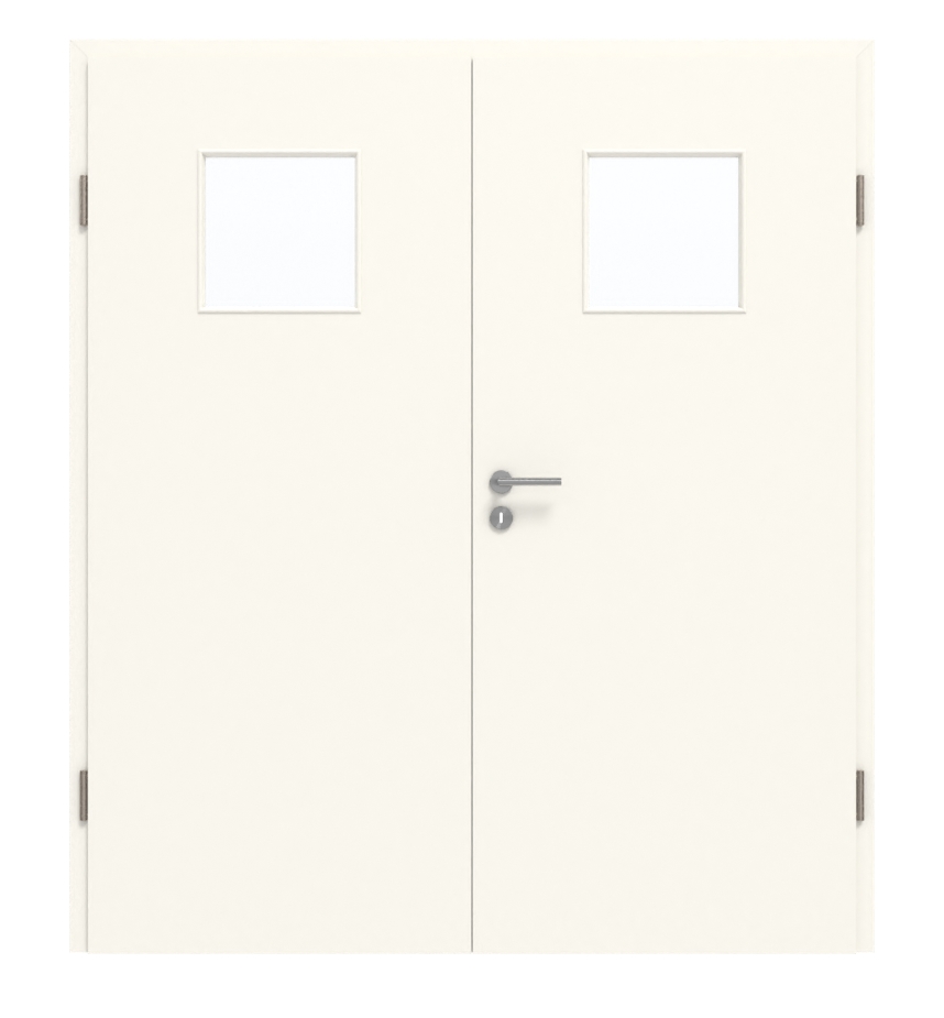 Drzwi dwuskrzydłowe są produkowane z rdzeniem z pełnej płyty wiórowej. Dzięki temu spełnia wymagania grupy obciążenia M i może być stosowana zarówno w pomieszczeniach prywatnych, jak i biurowych. Cena obejmuje skrzydło ruchome i stałe, ościeżnicę, zawiasy i zamek na klucz.