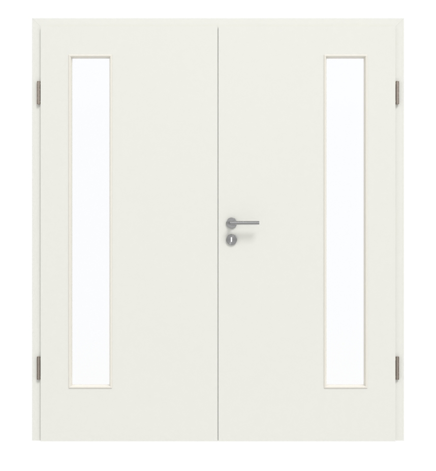 Aby uzyskać większą jasność w pomieszczeniu: Drzwi dwuskrzydłowe LA-4 po stronie zawiasów 0135-60 Rain firmy Garant przekonują zarówno pod względem wizualnym, jak i funkcjonalnym.