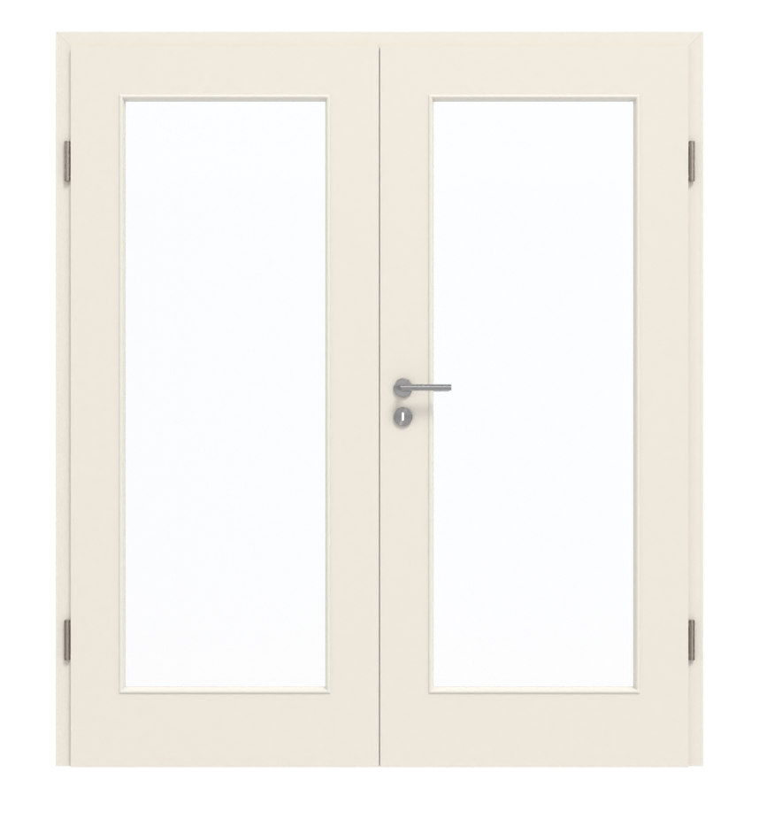 Oba skrzydła drzwi mają rdzeń z płyty wiórowej. Podwójne drzwi odpowiadają grupie obciążenia M i dlatego mogą być stosowane zarówno w pomieszczeniach mieszkalnych, jak i biurowych. Cena obejmuje dwa skrzydła drzwiowe, pasującą ościeżnicę, zawiasy i zamek na klucz.