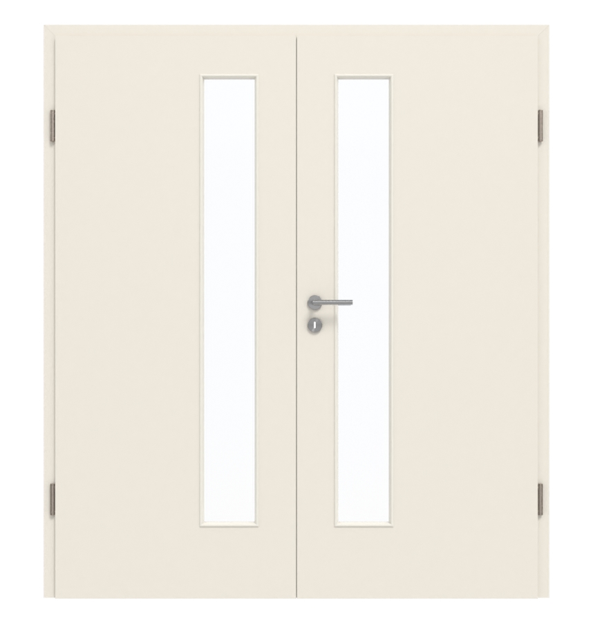 Oba skrzydła drzwi mają rdzeń z płyty wiórowej. Podwójne drzwi odpowiadają grupie obciążenia M i dlatego mogą być stosowane zarówno w pomieszczeniach mieszkalnych, jak i biurowych. Cena obejmuje dwa skrzydła drzwiowe, pasującą ościeżnicę, zawiasy i zamek na klucz.