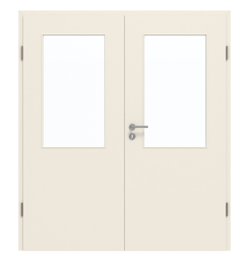 Dzięki środkowej warstwie z pełnej płyty wiórowej drzwi podwójne nadają się zarówno do pomieszczeń prywatnych, jak i biurowych. Przetestowane w grupie obciążenia M. W zestawie oprócz skrzydła ruchomego i skrzydła stałego znajduje się również odpowiednia ościeżnica, zawiasy i zamek na klucz.