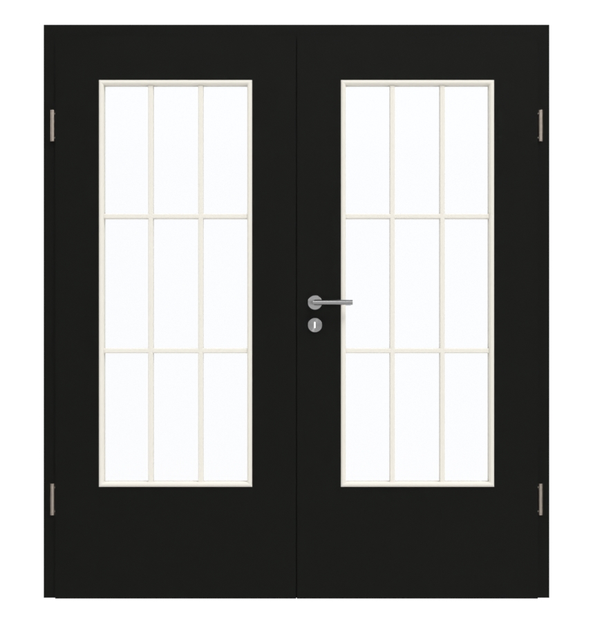 Duże wycięcia na szyby zapewniają doskonały dopływ światła. Nałożone szprosy stanowią elegancki element stylistyczny i dzielą szkło na dziewięć równych pól. Subtelna, perłowa struktura nadaje dekorowi Black w kolorze czarnym atrakcyjny wygląd. Zarysowania i uderzenia nie mają większego wpływu na wytrzymałą warstwę wierzchnią HPL. Ponadto jest ona bardzo łatwa w czyszczeniu.