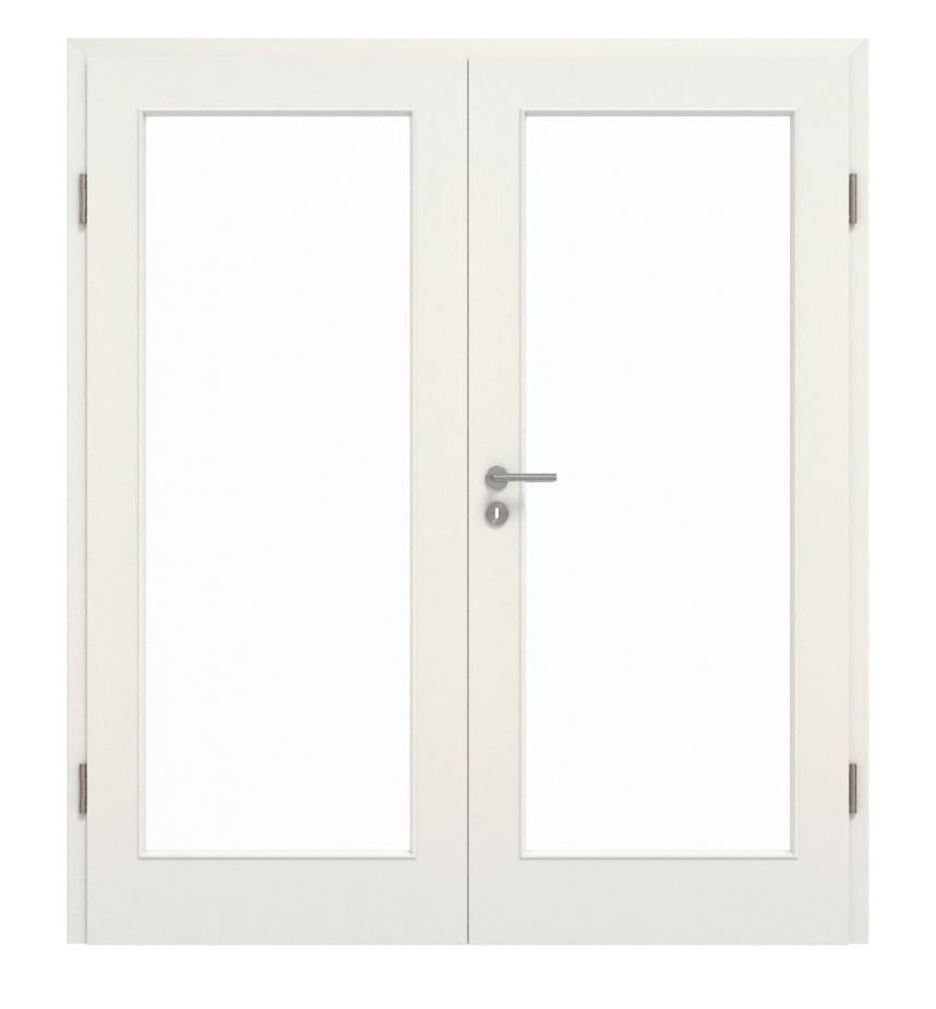 Dzięki rdzeniowi z płyty wiórowej oraz certyfikacji w grupie obciążeniowej M te drzwi dwuskrzydłowe nadają się zarówno do pomieszczeń prywatnych, jak i biurowych. Oprócz skrzydła ruchomego i stałego w zestawie znajdują się również ościeżnica, zamek i zawiasy.