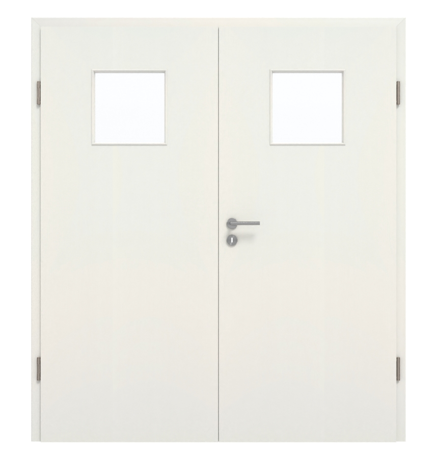 Dzięki klasie wytrzymałości M dwuskrzydłowe drzwi są przeznaczone do użytku w pomieszczeniach prywatnych lub biurowych. Stabilność zapewnia warstwa środkowa z pełnej płyty wiórowej. Cena obejmuje skrzydło ruchome i stałe, ościeżnicę, zawiasy i zamek na klucz.