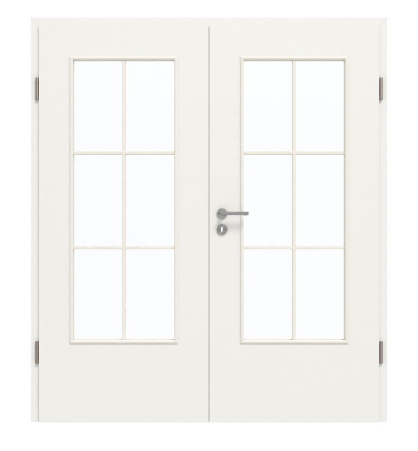 Dzięki dużym, prostokątnym przeszkleniom oba skrzydła drzwi przepuszczają dużo światła. Są one elegancko podkreślone przez delikatne pędy . Niezależnie od tego, czy chodzi o klasyczne, czy nowoczesne wnętrze – neutralny dekor Biały lakier 9016 pasuje do każdego stylu wnętrz. Oprócz atrakcyjnego wyglądu ta łatwa w pielęgnacji warstwa wierzchnia przekonuje również swoją wysoką wytrzymałością.
