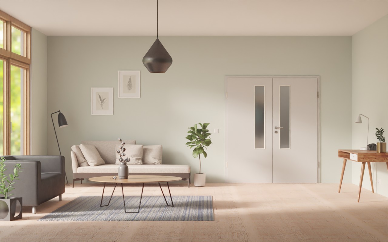 Atrakcyjna podwójna wewnętrzna drzwi z praktyczną powierzchnią HPL: