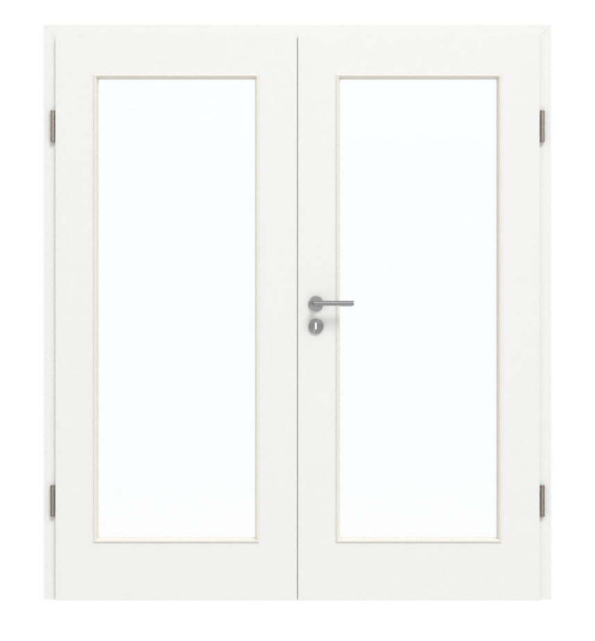 Dzięki warstwie środkowej z płyty wiórowej oraz certyfikacji w grupie obciążeniowej M te dwuskrzydłowe drzwi nadają się do użytku w domach prywatnych i biurach. W cenie zawarte są również ościeżnica, zamek i zawiasy.