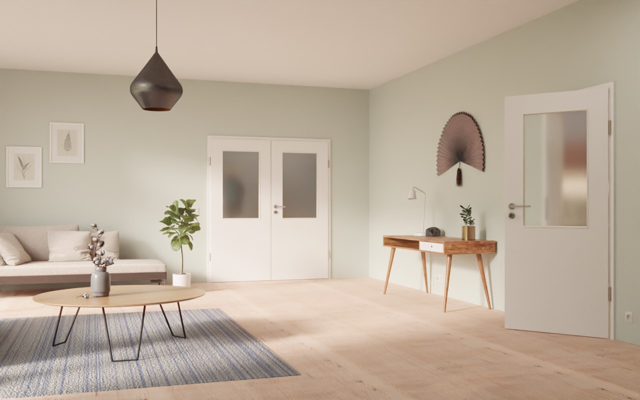 Estetyczne drzwi podwójne z dekoracją HPL odporną na brud: