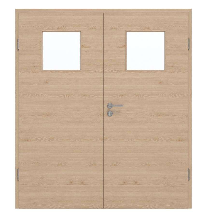 Oba skrzydła drzwi mają rdzeń z płyty wiórowej. Model ten odpowiada klasie użytkowania M, dzięki czemu nadaje się zarówno do pomieszczeń mieszkalnych, jak i biurowych. W cenie zawarte są nie tylko oba skrzydła drzwiowe, ale także ościeżnica, zawiasy oraz zamek z kluczem.