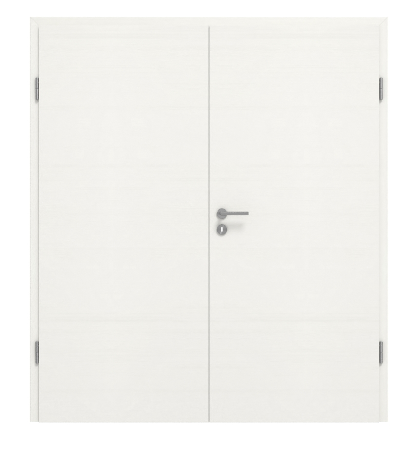 Dzięki klasie obciążenia M te dwuskrzydłowe drzwi są przeznaczone do użytku w pomieszczeniach prywatnych lub biurowych. O stabilność dba warstwa środkowa, wykonana w zależności od wyboru z płyt wiórowych lub płyt pełnowiórowych. W zestawie znajdują się skrzydło ruchome i skrzydło stałe, ościeżnica, zawiasy oraz zamek z kluczem.