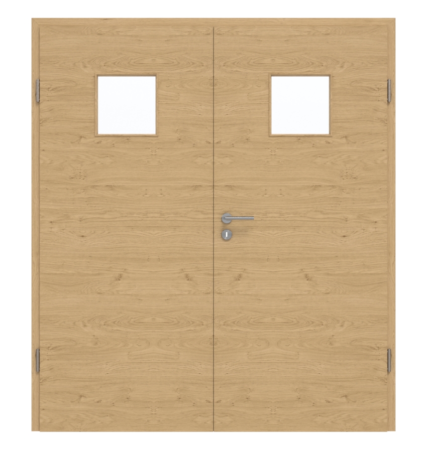 Niezależnie od tego, czy chodzi o pomieszczenie prywatne, czy biuro – drzwi dwuskrzydłowe z klasy obciążenia M nadają się w równym stopniu do obu tych miejsc. Ich warstwa środkowa jest wykonana z pełnej płyty wiórowej. Ościeżnica, zawiasy i zamek z kluczem są już wliczone w cenę.