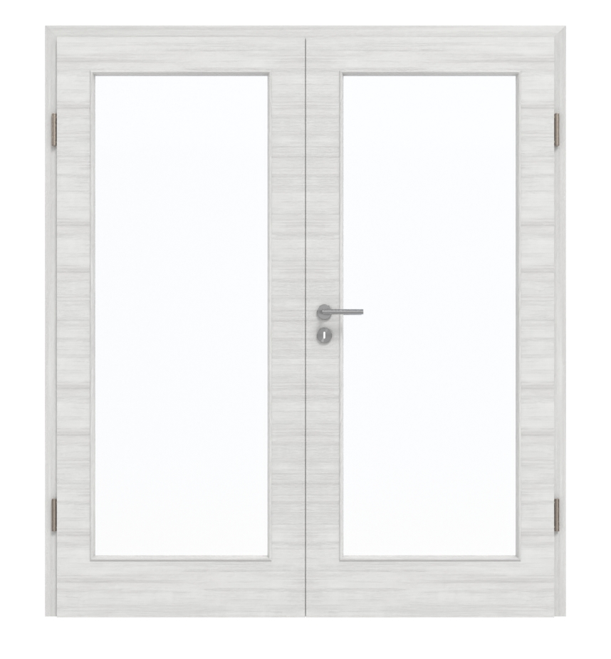 Dzięki środkowej warstwie z litej płyty wiórowej te dwuskrzydłowe drzwi nadają się zarówno do pomieszczeń prywatnych, jak i biurowych. Produkt został przetestowany w grupie obciążeniowej M . Cena obejmuje skrzydła ruchome i stałe, ościeżnicę, zawiasy oraz zamek z kluczem.