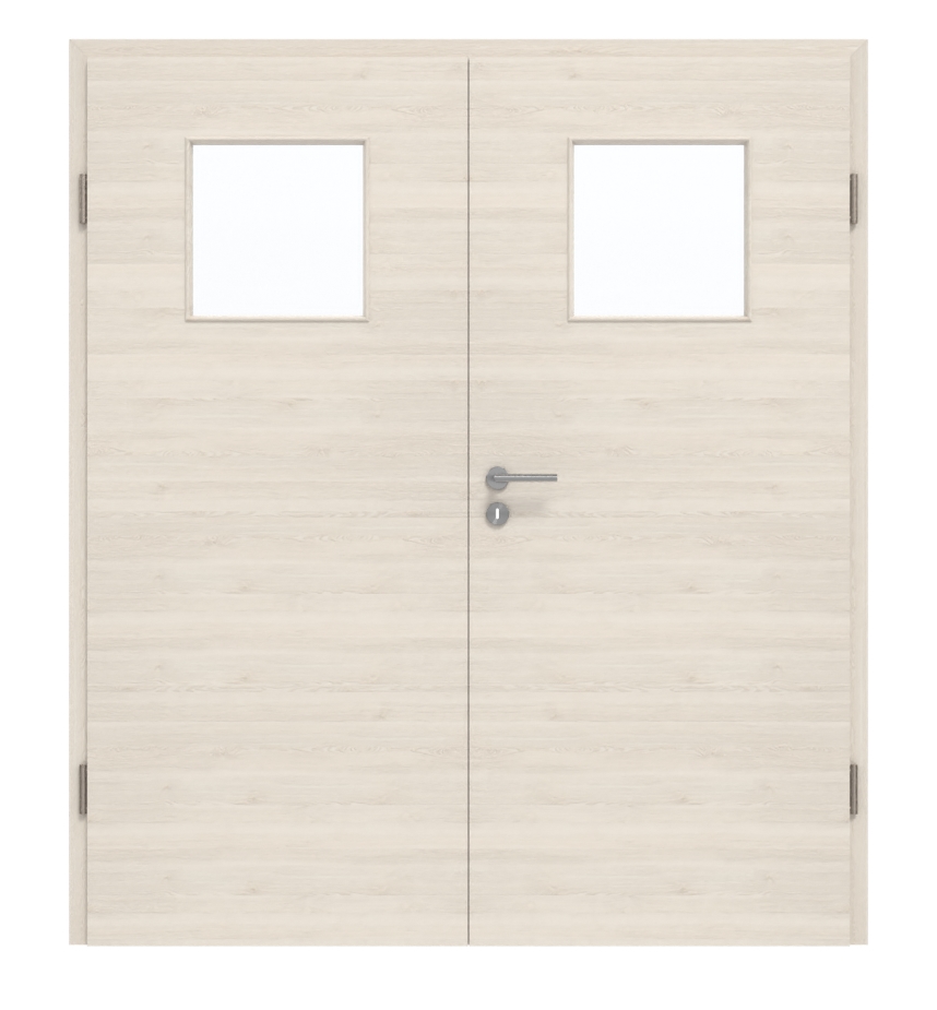 Drzwi dwuskrzydłowe, przetestowane w grupie obciążenia M, nadają się zarówno do pomieszczeń prywatnych, jak i biurowych. W rdzeniu wykonane z pełnej płyty wiórowej. Aby wszystko pasowało, drzwi są dostarczane wraz z ościeżnicą, zamkiem na klucz i zawiasami.