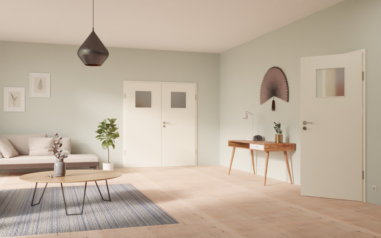 Stylowe drzwi podwójne z łatwą w pielęgnacji okleiną HPL: