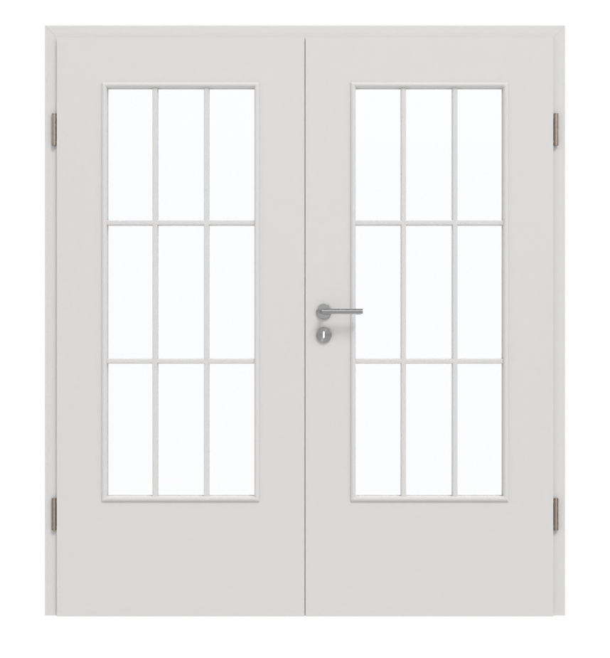 Dzięki dużym przeszkleniom drzwi zapewniają piękny dopływ światła. Delikatne ramy z listew dzielą duże prostokąty na po dziewięć mniejszych. Powierzchnia CePaL Silver Grey zachwyca nowoczesnym, jednolitym odcieniem szarości. Dekoracyjna warstwa wierzchnia jest odporna na uszkodzenia oraz nieczuła na zarysowania i uderzenia.
