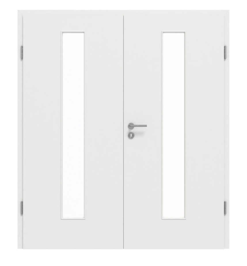 Piękny element przyciągający wzrok: Drzwi dwuskrzydłowe z LA-4 na środku, biały matowy lakier 9016 firmy Garant przekonują harmonijnym designem.