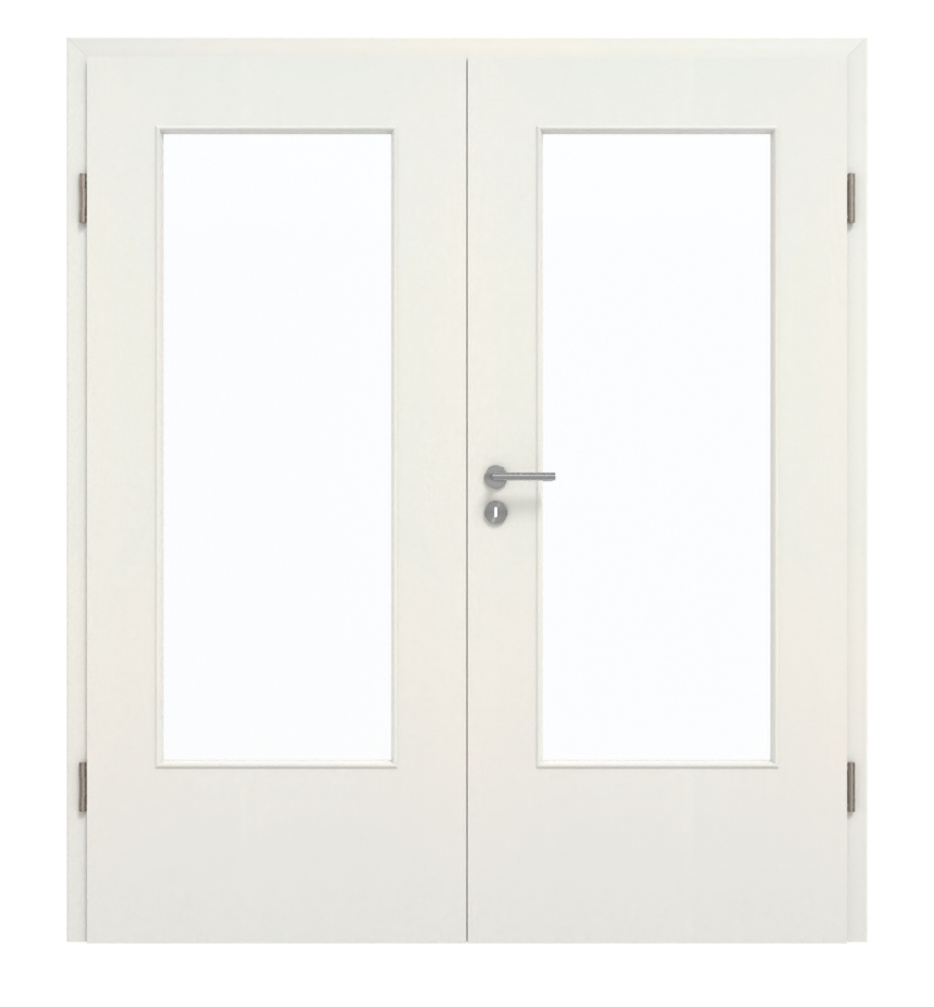 Środkowa część podwójnych drzwi wykonana jest z pełnej płyty wiórowej. Model ten może być stosowany zgodnie z grupą obciążenia M w pomieszczeniach prywatnych lub komercyjnych. W zestawie znajdują się skrzydło ruchome i skrzydło stałe, ościeżnica, zawiasy i zamek bębenkowy.