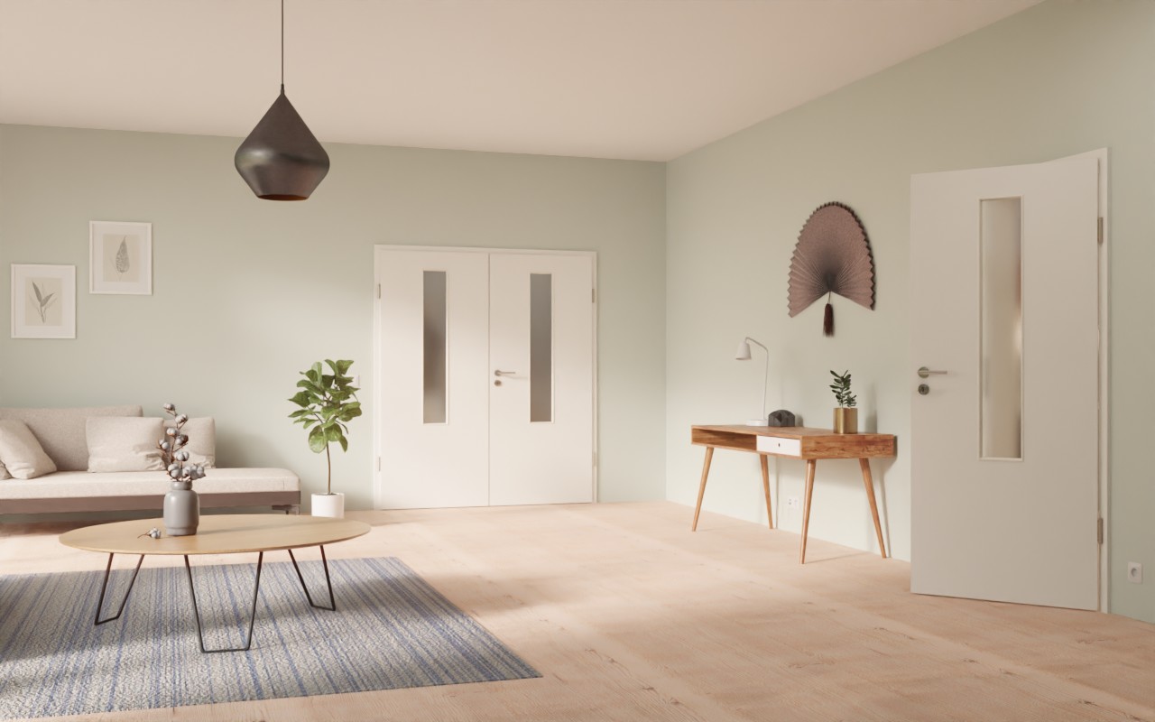 Estetyczne podwójne drzwi wewnętrzne z odporną na uszkodzenia powierzchnią HPL: