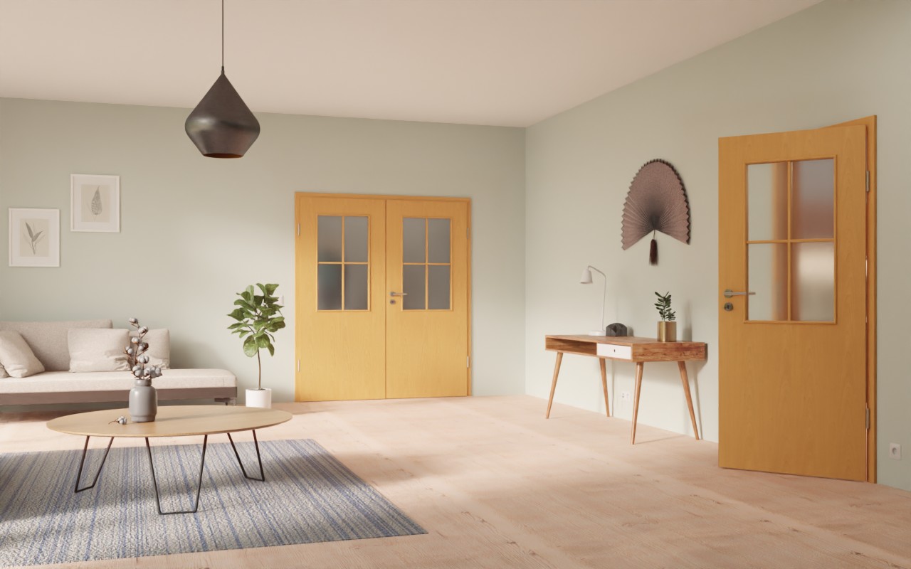 Atrakcyjne drzwi podwójne z solidnym dekoracyjnym CPL:
