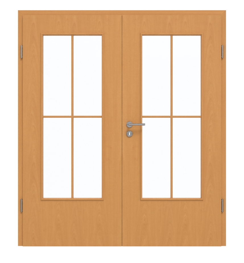 Drzwi dwuskrzydłowe, przetestowane w grupie obciążeniowej M , nadają się zarówno do pomieszczeń prywatnych, jak i biurowych. W zasadzie składa się z płyty wiórowej. W zestawie znajdują się skrzydło ruchome i skrzydło stałe, odpowiednia ościeżnica, zawiasy oraz zamek z kluczem.
