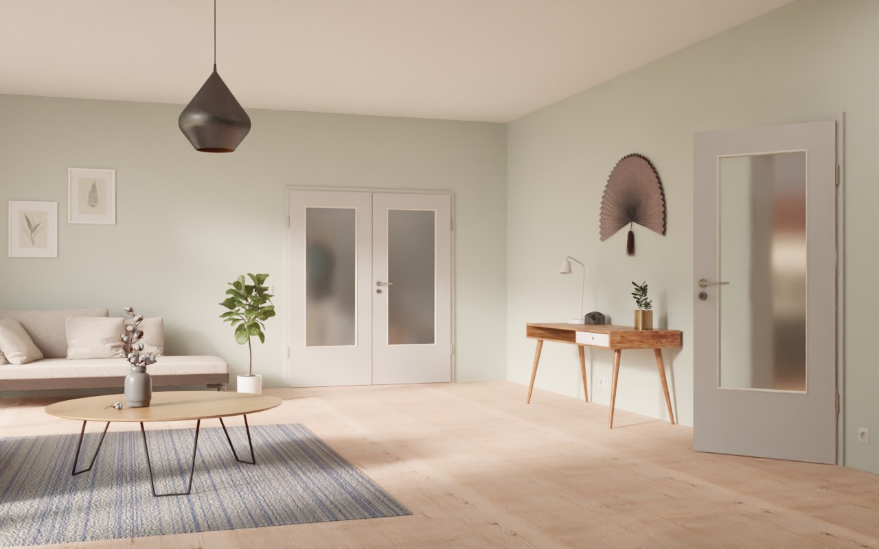 Stylowe podwójne drzwi wewnętrzne z łatwą do czyszczenia okleiną HPL: