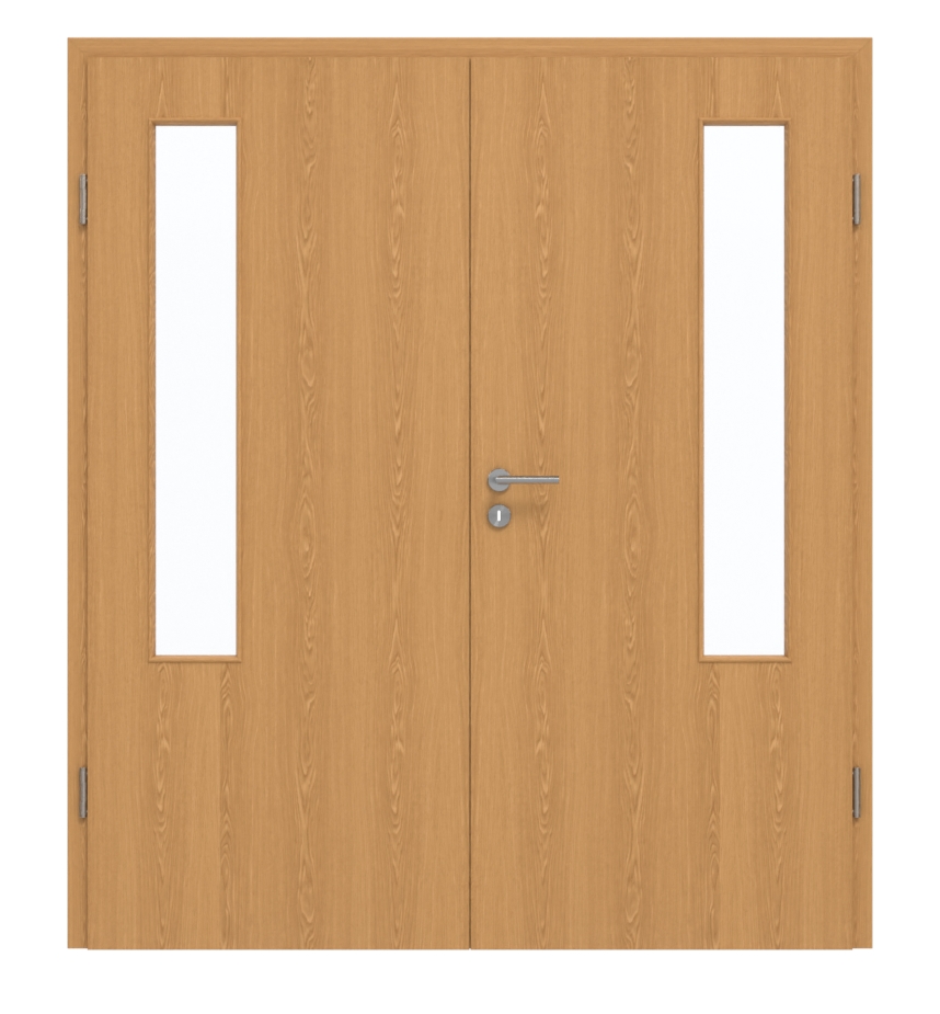 Dzięki rdzeniowi z pełnego wióra i testowi w grupie obciążeniowej M, podwójne drzwi skrzydłowe nadają się zarówno do przestrzeni prywatnych, jak i biurowych. W zestawie oprócz skrzydeł drzwiowych znajdują się również ościeżnica, odpowiednie zawiasy i zamek z kluczem.