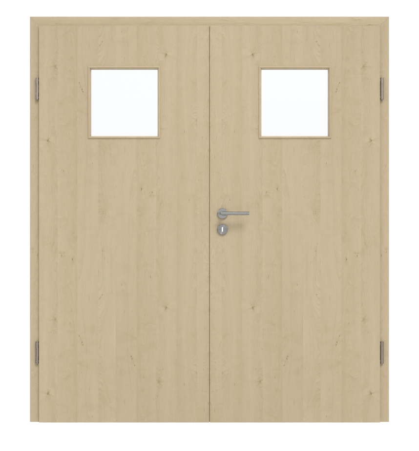 Dzięki rdzeniowi z pełnej płyty wiórowej i certyfikatowi klasy wytrzymałości M drzwi dwuskrzydłowe mogą być stosowane zarówno w pomieszczeniach prywatnych, jak i biurowych. Ościeżnica, zawiasy i zamek na klucz są już zintegrowane w cenie.